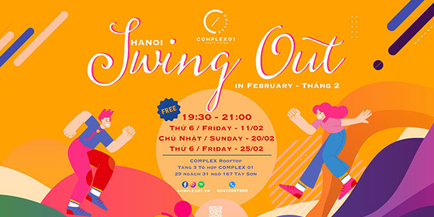 HANOI SWING OUT là chuỗi hoạt động nhảy giao lưu Swing cực kỳ sôi động tại COMPLEX Rooftop (Sân 3 - sân thượng Tầng 3 Tổ hợp COMPLEX 01). HANOI SWING OUT được tổ chức từ tháng 07/2021 đã & đang mang đến một sân chơi cực kỳ sôi động cho bất cứ ai...