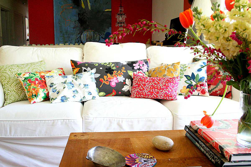 - Hãy khiến cho phòng khách nhà bạn trở nên thu hút hơn và có điểm nhấn cùng với một vài chiếc gối nhỏ có màu sắc rực rỡ. Chắc hẳn bạn sẽ ngạc nhiên đó nhé.