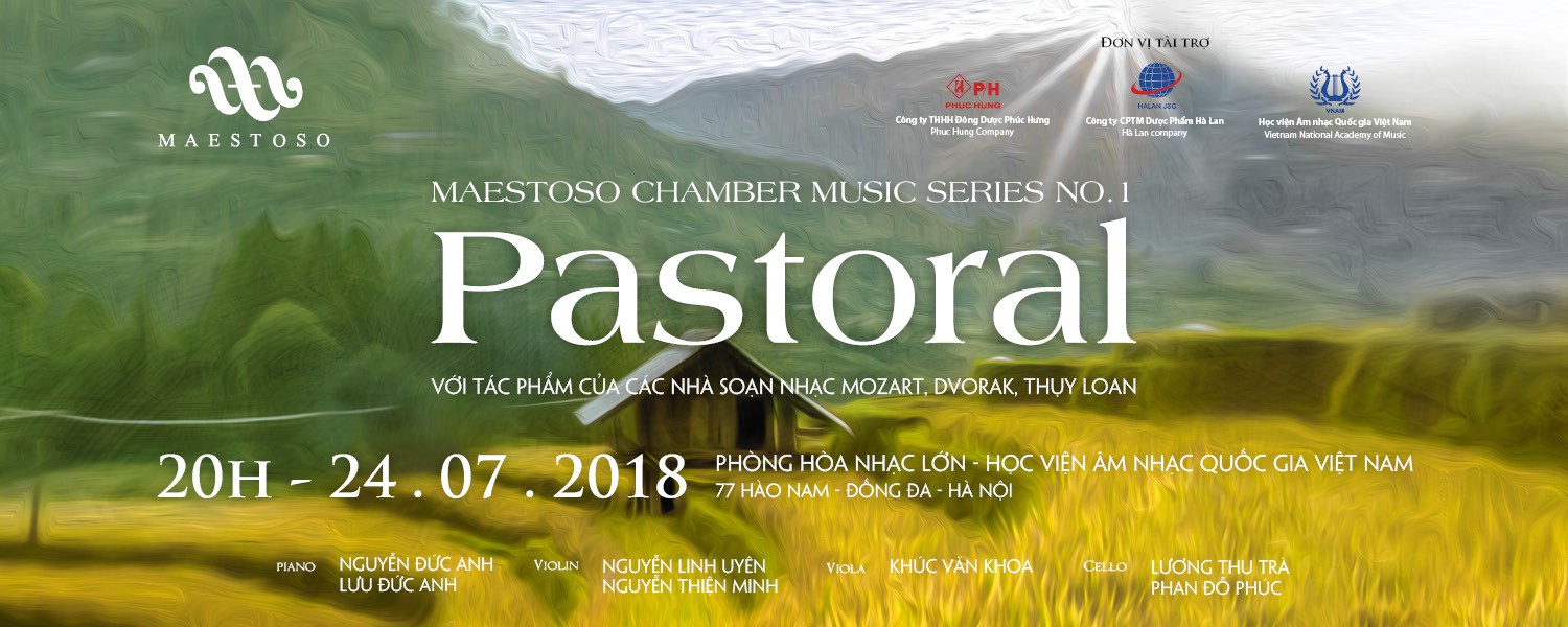 Maestoso sẽ tiếp tục gửi đến khán giả chương trình hòa nhạc định kỳ tiếp theo của nhóm mang tên Pastoral. Nhóm đã tổ chức hai chương trình thành công với hình thức độc tấu Piano; “Reminiscenza” tháng 12 năm 2017, “Grandioso” tháng 3 năm 2018, hòa nhạc “Pastoral” sẽ theo hình thức hòa tấu (Chamber music) với sự kết hợp của nhiều nhạc cụ và nhiều nghệ sĩ.
