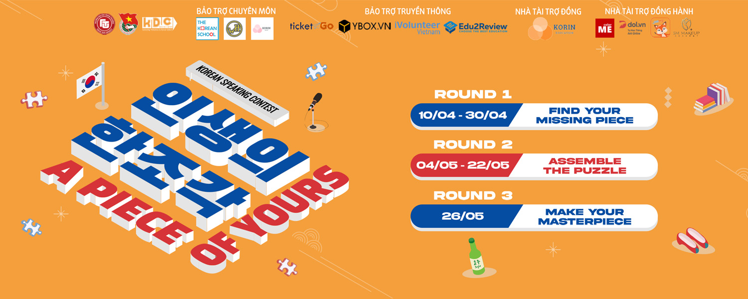 Cuộc thi "Korean Speaking Contest: A piece of yours" do CLB KDC lần đầu tiên tổ chức hứa hẹn sẽ là sân chơi lành mạnh cho các bạn trẻ có đam mê với ngôn ngữ và văn hoá Hàn Quốc đang muốn thử sức bản thân.