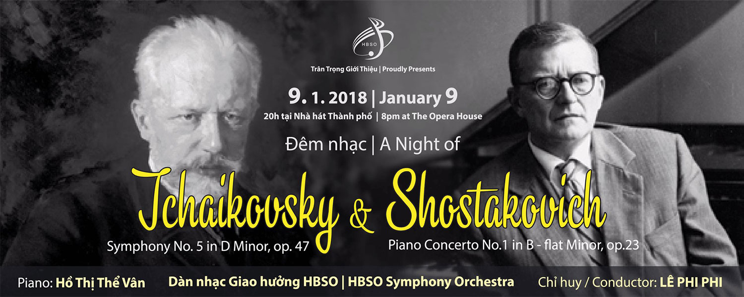 Vào vào ngày 09/01/2018, quý khán giả sẽ có cơ hội thưởng thức âm nhạc của hai nhà soạn nhạc Nga vĩ đại, Tchaikovsky và Shostakovich, lần lượt qua hai sáng tác Concerto cho Piano số 1 Cung Si giáng thứ, Op. 23 và Giao hưởng số 5 Cung Rê thứ, Op. 47. Bản Concerto viết cho piano, cũng là thành công ở quy mô lớn đầu tiên của nhà soạn nhạc, được sáng tác ban đầu dành tặng người thầy Nikolai Rubinstein.