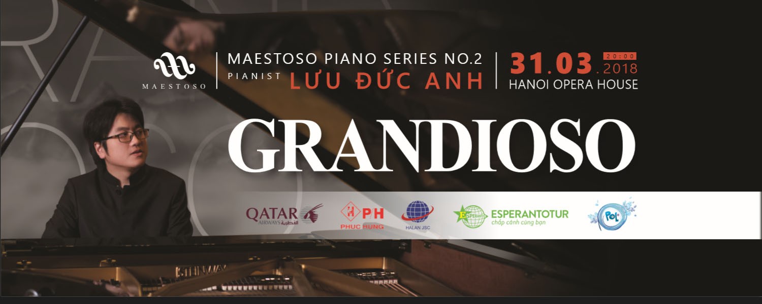 Nối tiếp thành công của Piano Series No.1 vào tháng 12/2017 vừa qua, tới đây, Maetoso sẽ mở đầu những hoạt động năm 2018 với buổi hoà nhạc độc đáo Piano series 2 “GRANDIOSO” của nghệ sĩ Lưu Đức Anh tại Nhà Hát lớn Hà Nội. Chương trình hứa hẹn mang đến cho quý vị khán giả đến tham dự một đêm nhạc tuyệt diệu, nơi những cung bậc cảm xúc được thăng hoa theo tiếng piano vang vọng.