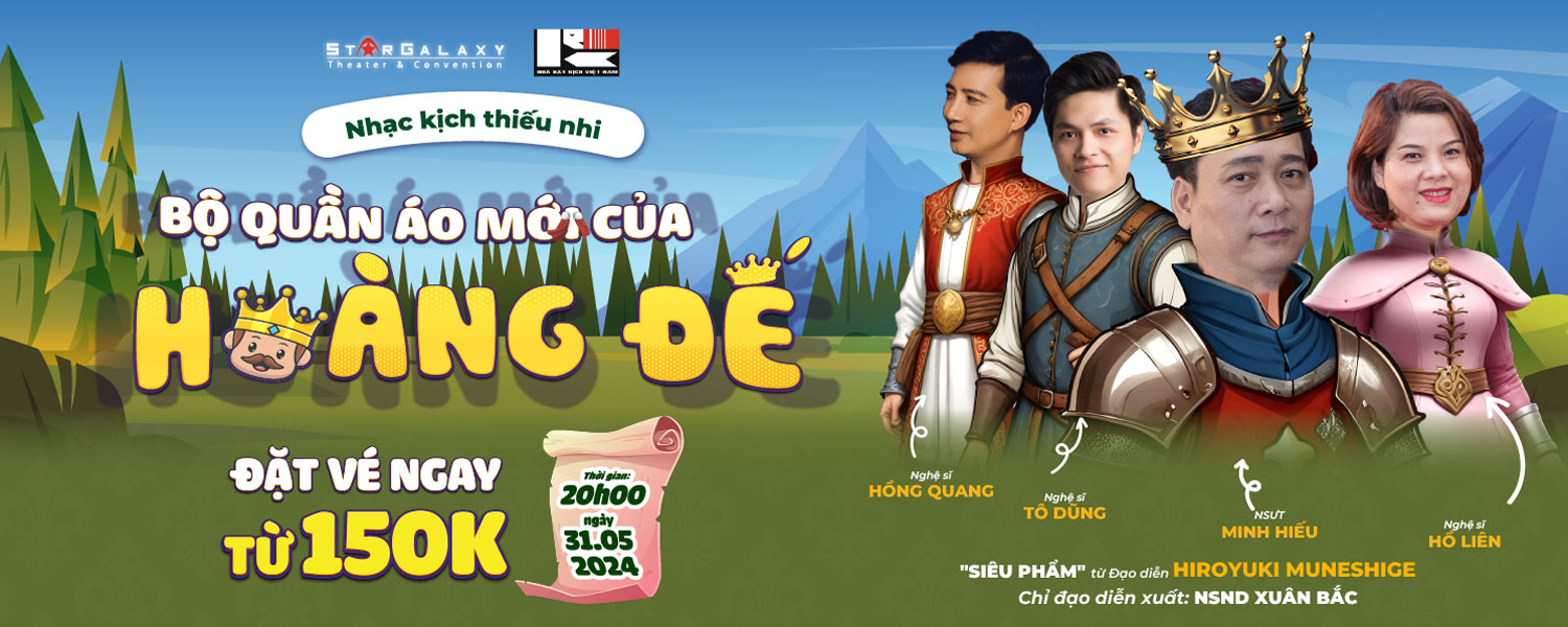 “BỘ QUẦN ÁO MỚI CỦA HOÀNG ĐẾ” lấy nguyên tác từ truyện cổ tích cùng tên của nhà văn người Đan Mạch An-đéc-xen. Phiên bản “Sân khấu nghệ thuật” được dàn dựng chuyên nghiệp chắc chắn sẽ mang đến cho khán giả nhí cùng quý phụ huynh những trải nghiệm mới lạ.Vở diễn xoay quanh câu chuyện kể về vị hoàng đế thích chưng diện đến mức mỗi ngày ông có thể thay đến mấy bộ y phục khác nhau chỉ để được quần thần nịnh hót, khen ngợi. Thậm chí, ông còn nghe lời 2 kẻ lạ mặt, mặc lên mình chiếc áo choàng không hề tồn tại tham gia buổi diễu hành và trở thành trò cười trong mắt tất cả mọi người.