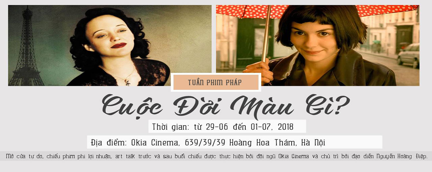 Tiếp nối thành công của tuần phim: Tình yêu kiểu Pháp tuần trước, tuần này OKIA Cinema sẽ tiếp tục mang đến cho các khán giả yêu thích dòng phim lãng mạn - thi vị hai bộ phim cực nổi tiếng của điện ảnh Pháp: La vie en rose và Amélie trong tuần phim Pháp: Cuộc đời màu gì?.