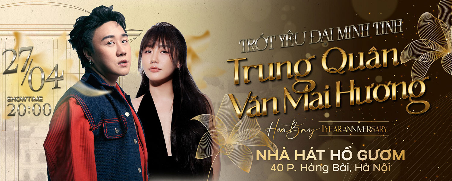Thưởng thức âm nhạc trong không gian nhà hát chuẩn 5 sao số 1 Việt Nam. Đêm nhạc đặc biệt đánh dấu sinh nhật 1 tuổi của Hoa Bay với sự xuất hiện của 2 giọng ca tài năng, đầy nội lực Trung Quân Idol & Văn Mai Hương. Bạn đã sẵn sàng hòa mình vào không gian âm nhạc vô cùng lãng mạn, nơi xúc cảm được thăng hoa cùng những giai điệu ngọt ngào?