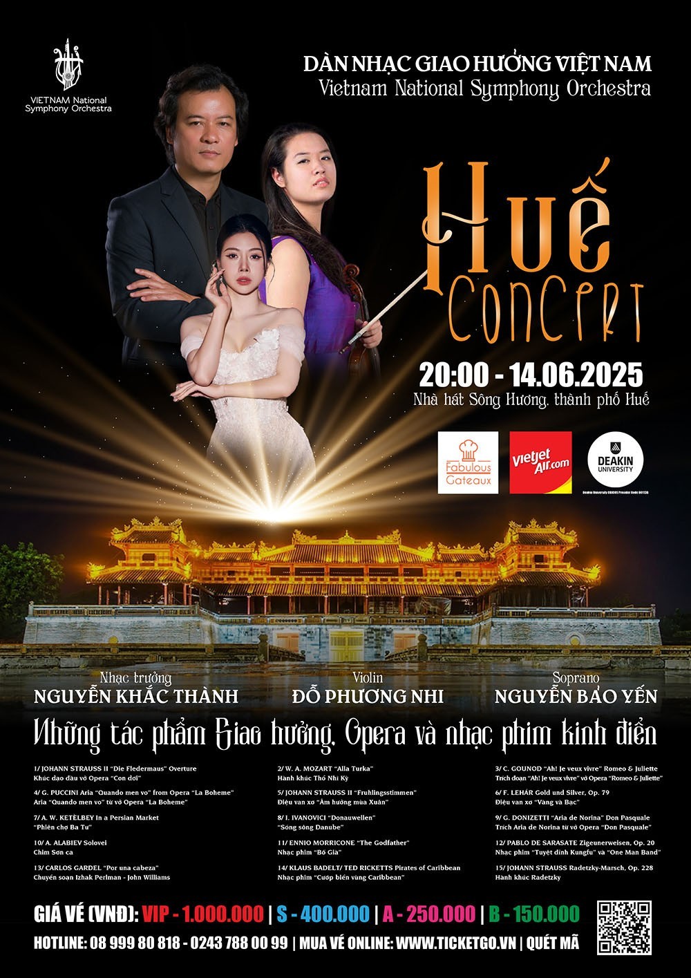 Tháng 6 này, sẽ diễn ra chương trình hòa nhạc "HUẾ CONCERT 2025" của Dàn nhạc Giao hưởng Việt Nam. Đây là chương trình hòa nhạc rất đặc biệt mà Dàn nhạc Giao hưởng Việt Nam mong muốn mang đến cho nhân dân cũng như du khách tại thành phố Huế được tiếp cận, trải nghiệm và thưởng thức nền âm nhạc nghệ thuật đỉnh cao.