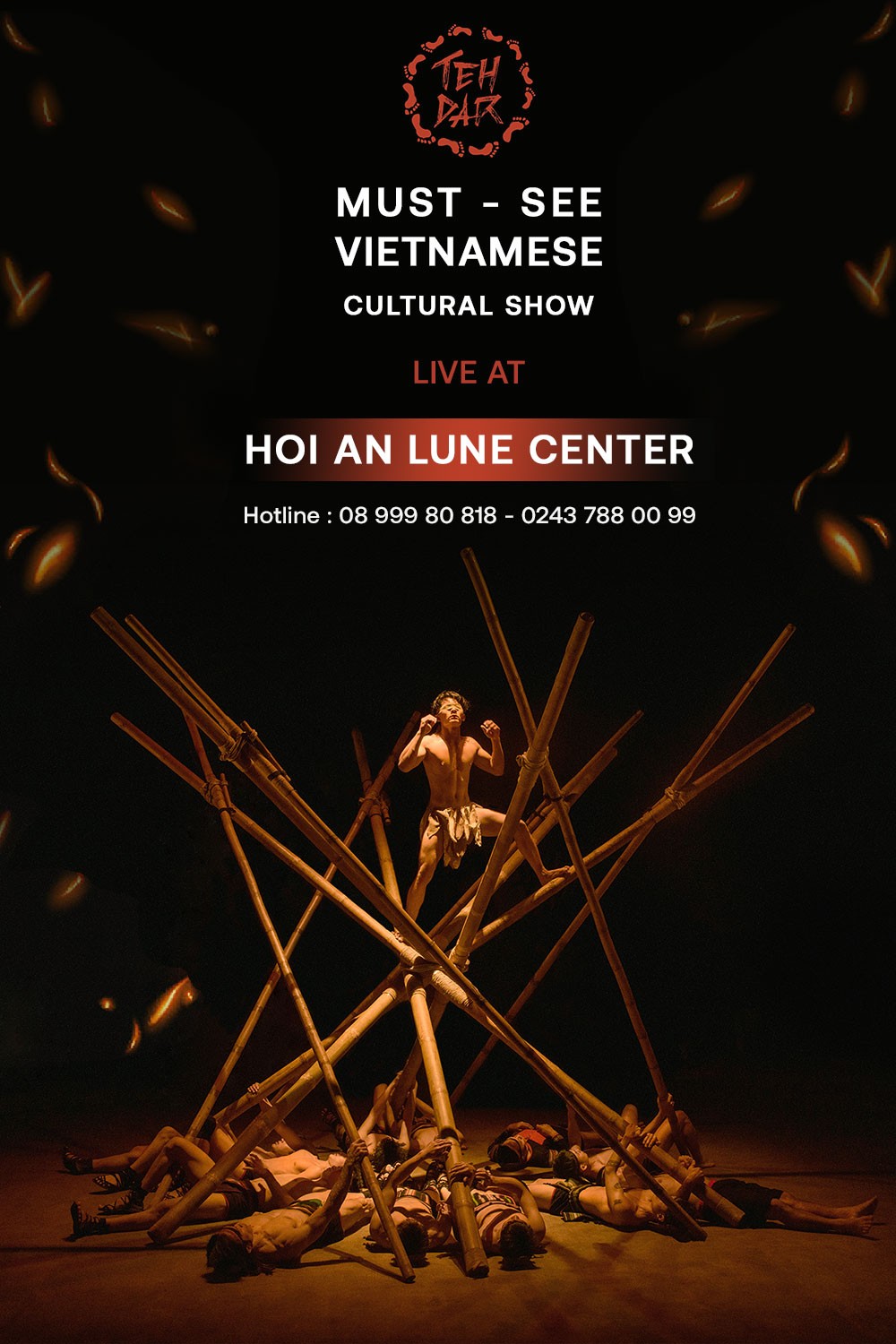 Teh Dar mới mẻ sẽ hút hồn người xem với kỹ thuật xiếc tre và nhào lộn mạo hiểm táo bạo, cùng âm sắc nhạc cụ dân tộc Tây Nguyên mê hoặc, tái hiện những khung cảnh hùng vĩ và man dại từ ký ức buôn làng, lịch sử dân tộc ngàn xưa.