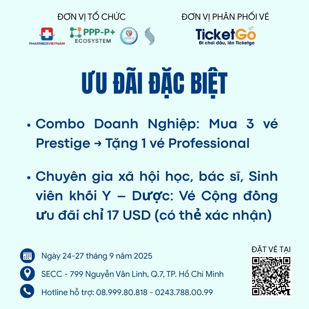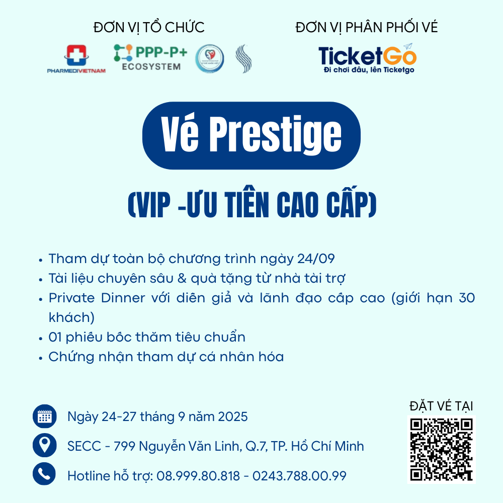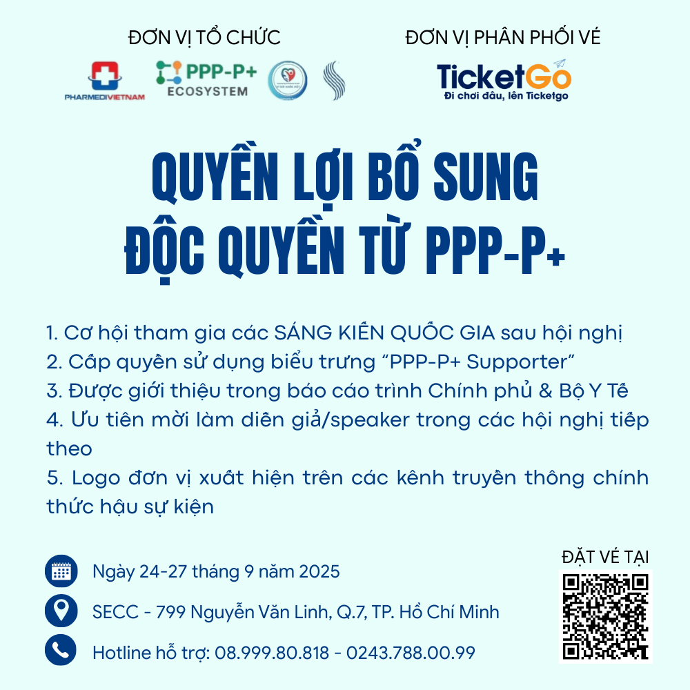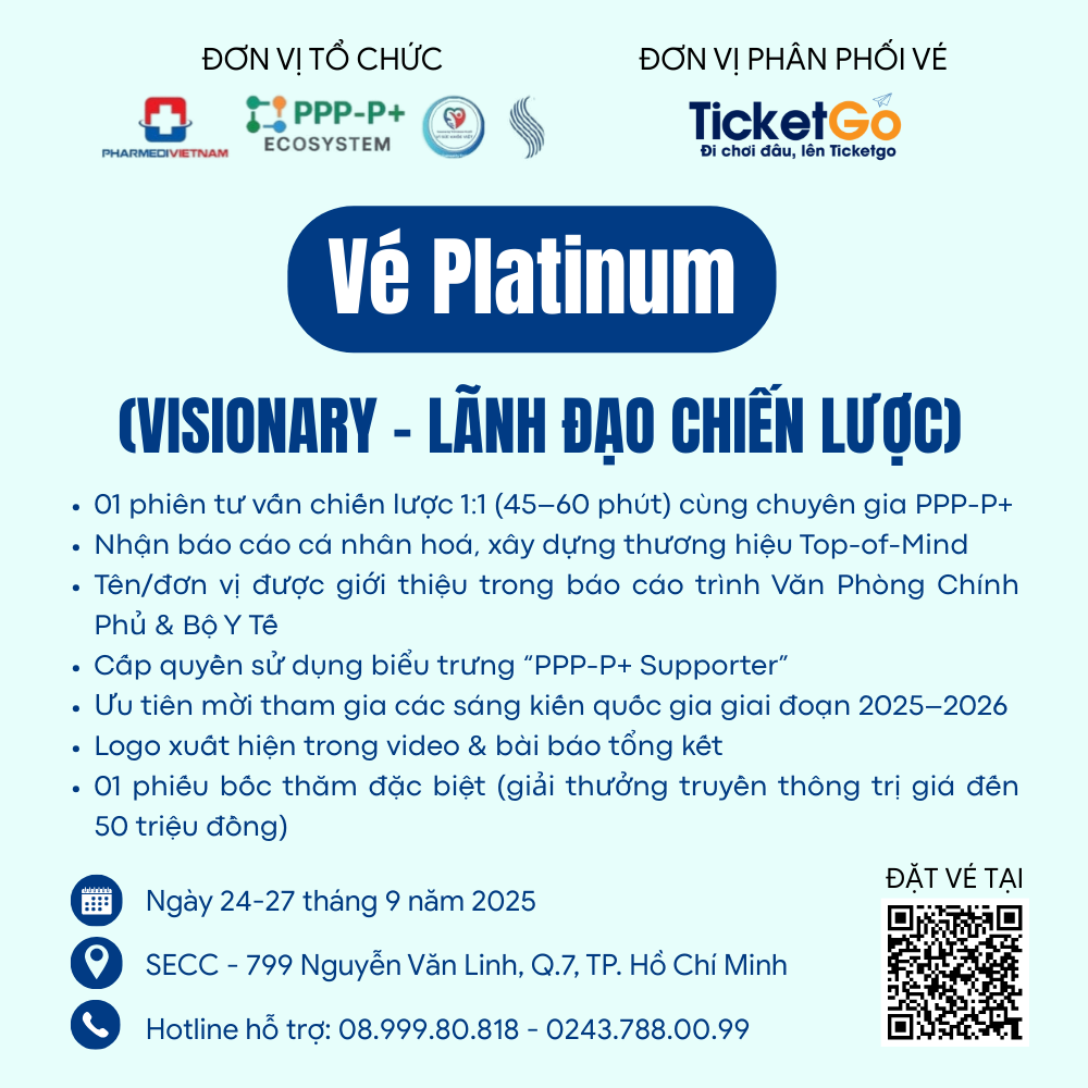 - Nếu có chuyên môn hoặc đóng góp nổi bật, khách mời sở hữu Vé Platinum sẽ được ưu tiên mời làm diễn giả hoặc khách mời danh dự trong chuỗi hội nghị chuyên đề 2025–2030 của PPP-P+.
