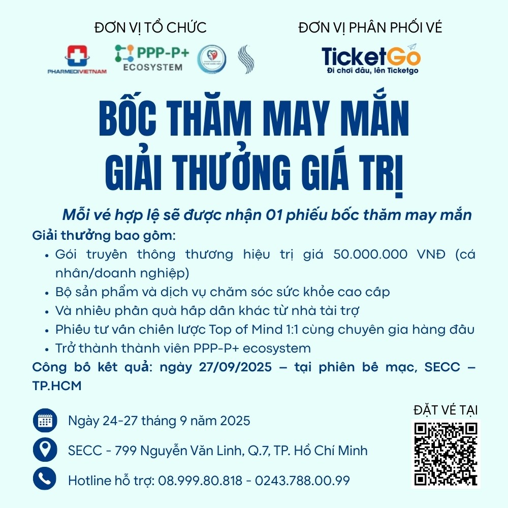 Số lượng vé có hạn. Nhanh tay đặt vé sớm để nhận những quyền lợi độc quyền từ PPP-P+ và cơ hội bốc thăm may mắn với những giải thưởng giá trị.Số lượng vé có hạn. Nhanh tay đặt vé sớm để nhận những quyền lợi độc quyền từ PPP-P+ và cơ hội bốc thăm may mắn với những giải thưởng giá trị.