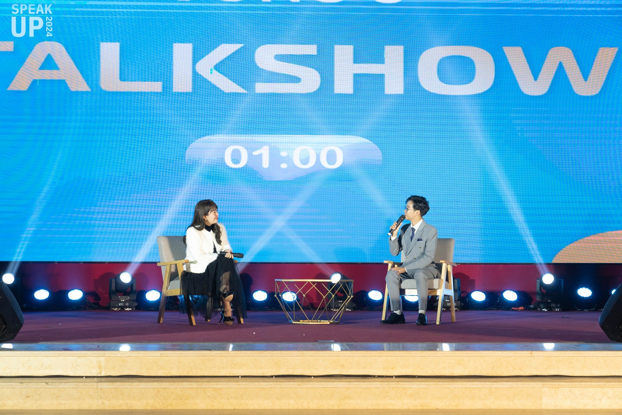 Ảnh 3: Phần thi Talkshow tại Chung kết SPEAK UP 2024, nơi thí sinh thể hiện tư duy và khả năng dẫn dắt chuyên sâu.