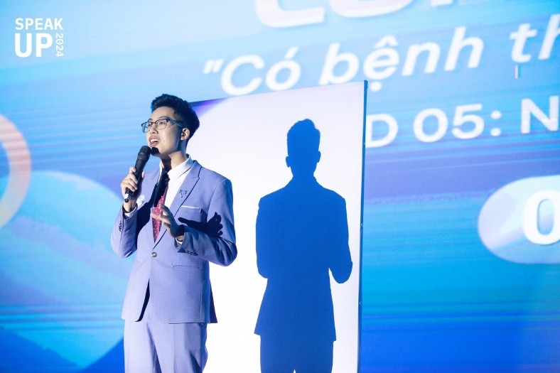 Ảnh 1: Những gương mặt tranh tài lộ diện sau tấm màn chắn, tỏa sáng dưới ánh đèn sân khấu SPEAK UP 2024.