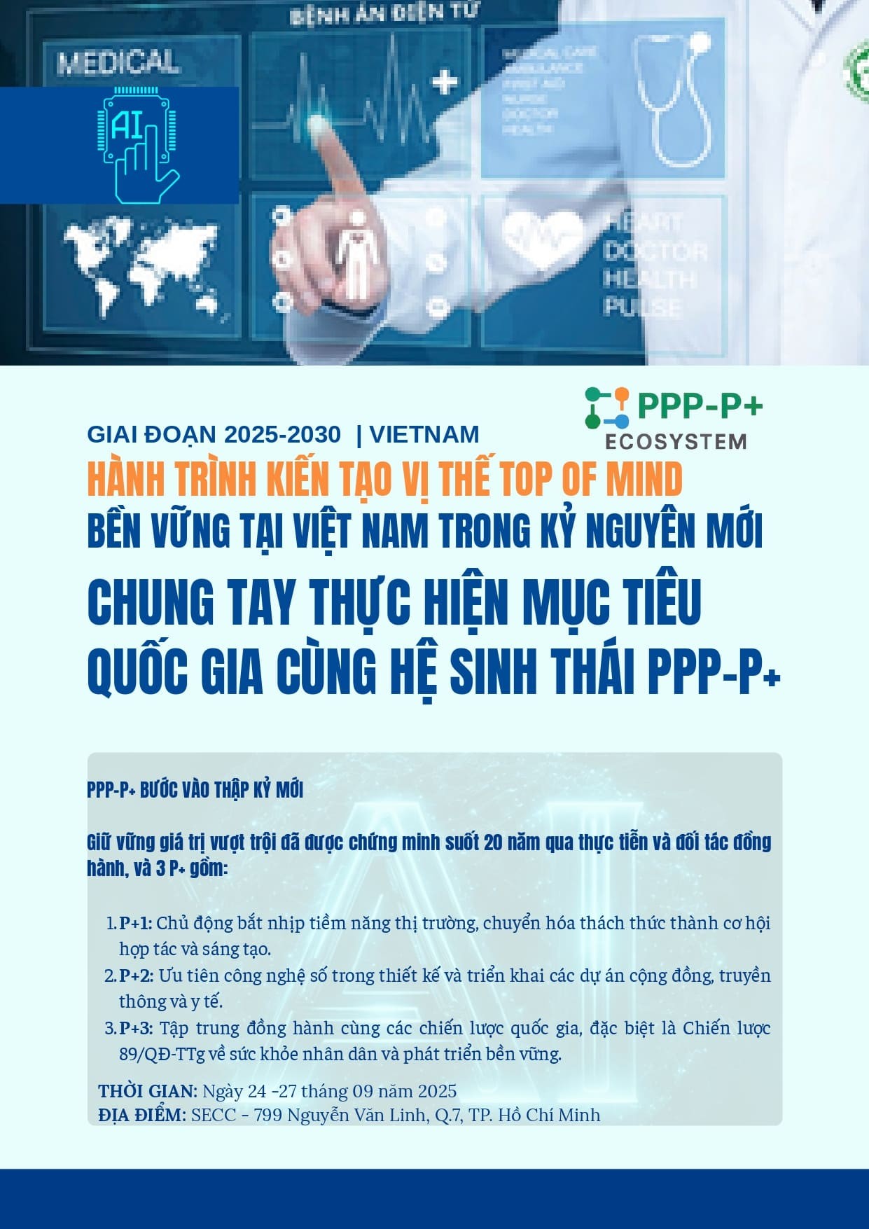 Được khởi xướng bởi Ban Dự án Cộng đồng Việt Nam và ADCREW, sau gần hai thập kỷ phát triển bền vững, hệ sinh thái PPP-P+ (Public - Private - People Plus) đã và đang trở thành mô hình hợp tác tiên phong nhằm hướng đến sức khỏe cộng đồng, giáo dục, môi trường và phát triển bền vững. PPP-P+ 2025 sẽ quy tụ hơn 300 lãnh đạo cấp cao, chuyên gia đầu ngành, doanh nghiệp tiên phong và tổ chức quốc tế cùng hơn 20.000 lượt khách thương mại.