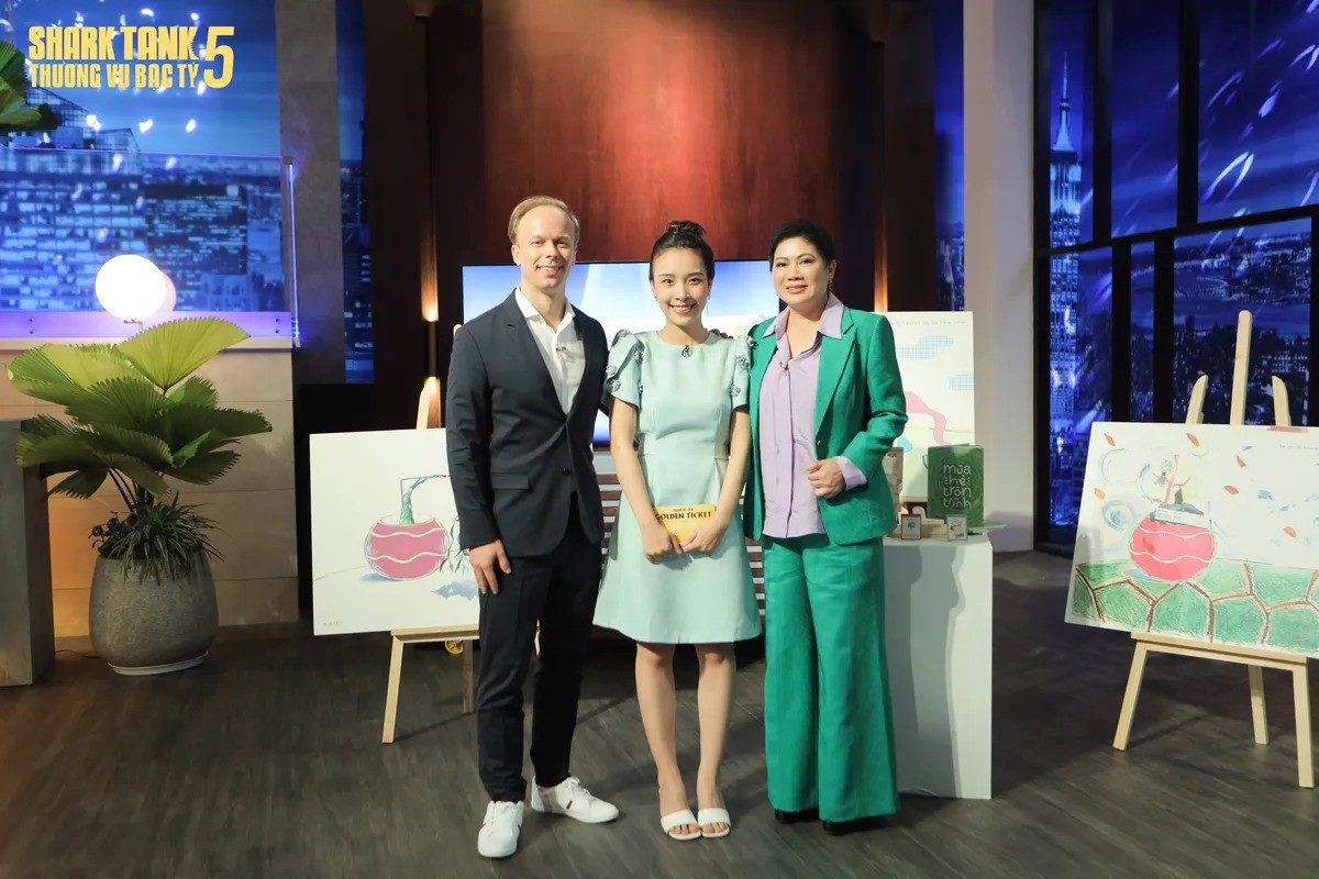 (Ảnh 4: Quán quân VSIC 2020 - Đội thi Seesaw nhận được Golden Ticket tại Shark Tank )