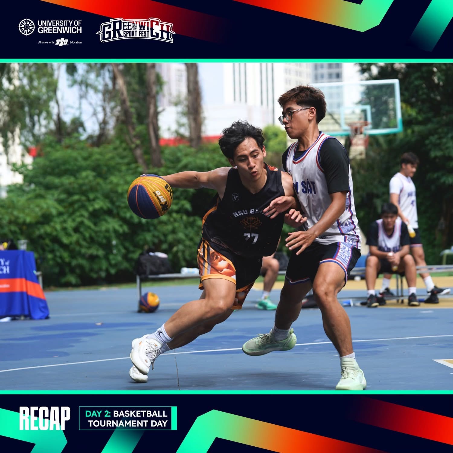 Chiều cùng ngày, bộ môn bóng rổ bước vào các trận vòng loại hấp dẫn trên sân bóng Thanh Xuân. Tại GMF 2025, giải đấu quy tụ 12 đội bóng đến từ các câu lạc bộ bóng rổ trên địa bàn Hà Nội và các đối tác của Greenwich Việt Nam: FPT Polytechnic, Đại học Văn hoá, Đại học Công nghệ Đông Á, Học Viện Ngân Hàng, Học Viện Kiểm Sát. Trải qua những trận đấu gay cấn và hấp dẫn, đội BAB 2 đến từ Học Viện Ngân Hàng đã giành chiến thắng chung cuộc, trở thành nhà vô địch bóng rổ GMF 2025. Bên cạnh đó, danh hiệu Vận động viên xuất sắc nhất (MVP) được trao cho Lê Thành Long – “chiến binh thép” của đội Quán Quân đến từ Greenwich Việt Nam, với phong độ ổn định và tinh thần thi đấu bền bỉ xuyên suốt giải.