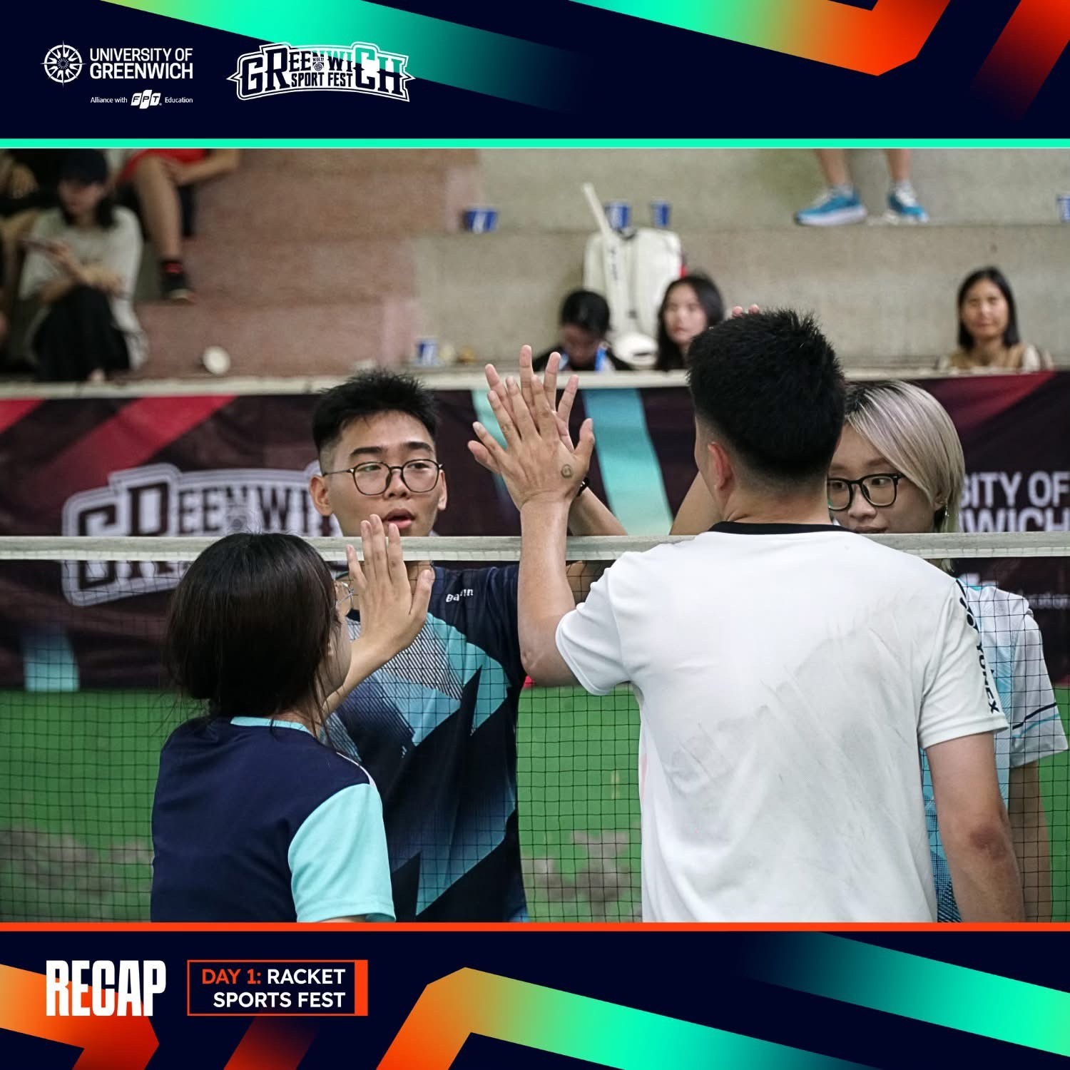 Tiếp nối những thành công của ngày thi đấu đầu tiên, sáng ngày 31/05/2025, Lễ Khai mạc Day 2 tại Greenwich Multi-Sport Fest 2025 được tổ chức trang nghiêm, mở màn cho những trận đấu gay cấn của các chiến binh sân gỗ. Nghi thức chào cờ cùng phần trao cờ luân lưu đã lan tỏa thông điệp đoàn kết, phát triển bền vững, đồng thời khích lệ tinh thần rèn luyện sức khỏe và phong trào thể thao trong sinh viên Greenwich.