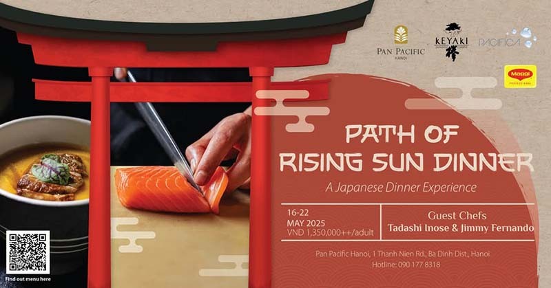 Chu du khắp nước Nhật trong từng món ăn tại Nhà hàng Pacifica; với sự góp mặt của hai đầu bếp khách mời Tadashi Inose và Jimmy Fernando từ nhà hàng Nhật Bản Keyaki của Tập đoàn Khách sạn Pan Pacific. Các nghệ nhân từ xứ sở mặt trời mọc sẽ mang đến cho bạn trải nghiệm ẩm thực Nhật Bản chân thực và tinh tế nhất.