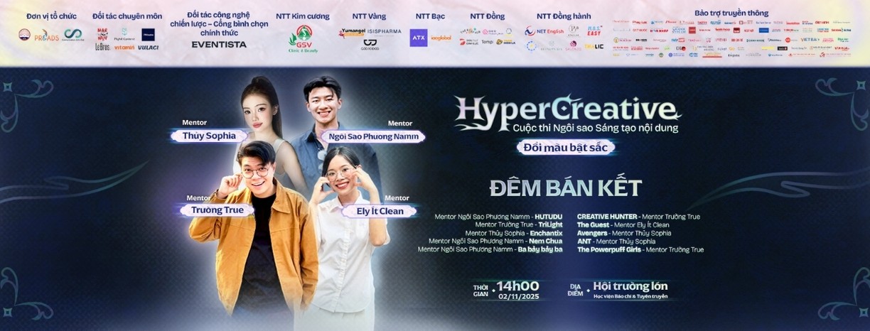 Cuộc thi Ngôi sao Sáng tạo nội dung HyperCreative 2025 do C.S.C - Câu lạc bộ Kỹ năng Truyền thông, Học viện Báo chí và Tuyên truyền tổ chức. Hướng tới sinh viên từ 18 đến 22 tuổi, cuộc thi mong muốn tạo ra môi trường thực hành và phát triển tư duy sáng tạo trong lĩnh vực nội dung số. Ngay từ khi khởi động, HyperCreative 2025 đã thu hút sự quan tâm và tham gia của nhiều sinh viên đến từ các trường đại học lớn trên toàn miền Bắc.