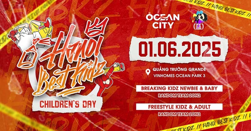 Nhằm hưởng ứng ngày Quốc Tế Thiếu Nhi 01.06 , Hanoi Best Kidz đồng hành cùng Ocean City mang đến giải đấu dành riêng cho các búp măng non, những thế hệ tương lai sáng giá của cộng đồng Hip Hop Việt.