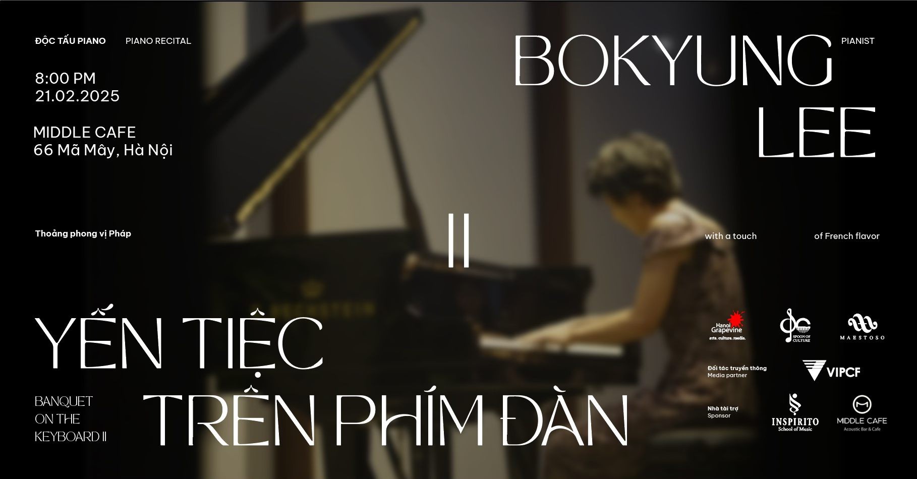 In February 2024, in both Hanoi and Ho Chi Minh City, the Piano Recital "Banquet on the Keyboard II with a touch of French flavor" by pianist Bokyung Lee is an accompanying event to the Vietnam International Piano Competition & Festival (VIPCF) - the first International Piano Competition held in Vietnam.