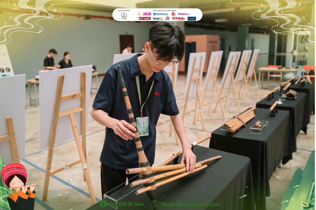 Điểm nhấn của triển lãm là hơn 10 hiện vật nhạc cụ dân tộc – những cây sáo đến từ các cộng đồng người Mông, Thái, Khơ Mú, Dao… Mỗi cây sáo không chỉ là nhạc cụ mà là một mảnh ký ức – gợi nhắc đến tiếng gọi đại ngàn, hơi thở núi rừng, những khúc dân ca mộc mạc.