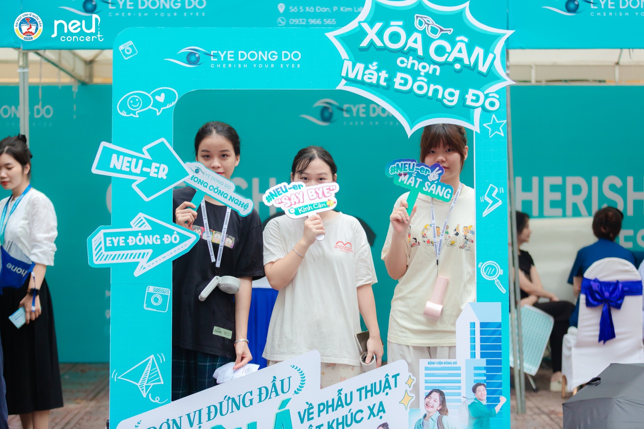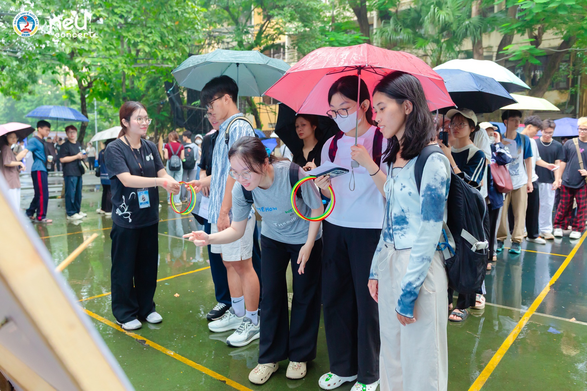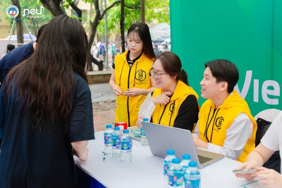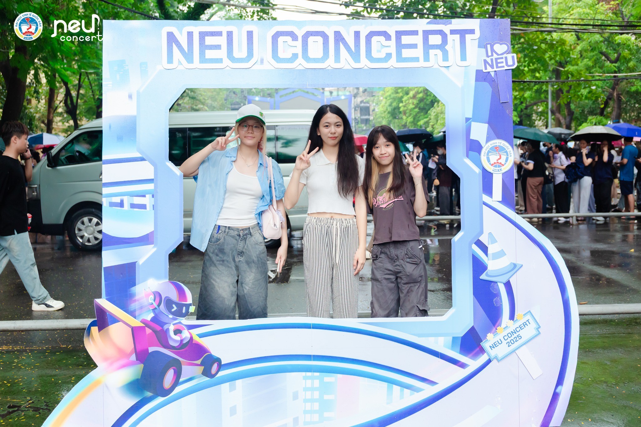Mở đầu chương trình Chào tân sinh viên, NEU Concert 2025 chính là các hoạt động trải nghiệm đầy lý thú và bổ ích, đi cùng với đó là các booth đến từ các Nhà tài trợ của chương trình như Vietcombank, Mắt Đông Đô, Grab, Anh Phi Bán Táo, Ecorp,... Tại khu vực gian hàng của các Nhà tài trợ, nhiều hoạt động tương tác sáng tạo được tổ chức nhằm mang đến cho các bạn sinh viên những trải nghiệm mới mẻ. Các trò chơi thử thách, hoạt động trải nghiệm sản phẩm, minigame hấp dẫn cùng vô số phần quà dễ thương và ý nghĩa đã thu hút đông đảo sinh viên tham gia. Song song với đó, Ban Tổ chức chương trình cũng chuẩn bị nhiều khu vực trò chơi và hoạt động tập thể dành riêng cho tân sinh viên. Những trò chơi được thiết kế vừa mang tính giải trí, vừa khuyến khích tinh thần đồng đội và khả năng sáng tạo. Dù thời tiết buổi sáng đem lại ít nhiều khó khăn bởi rất nhiều những đợt mưa to ập tới, nhưng điều đó không thể làm nguôi đi sự nhiệt huyết của các “tay đua” K67. Các hoạt động và các booth vẫn rất thu hút với lượng người tham gia lớn, chứng tỏ sức hút không thể chối cãi của NEU Concert 2025.