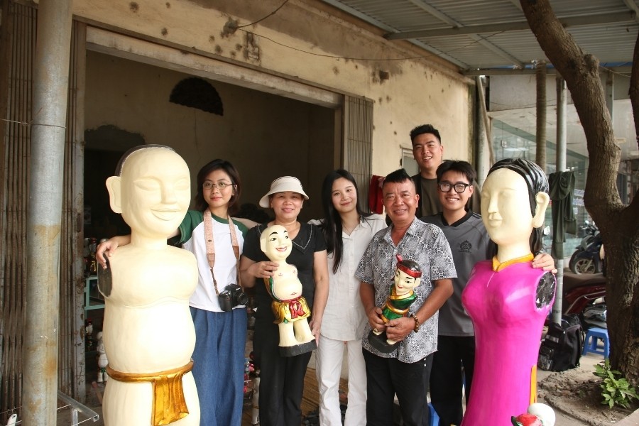 Trong quá trình tìm hiểu, nhóm sinh viên đã trực tiếp tới xưởng rối để quan sát từng công đoạn chế tác, từ khắc gỗ, sơn màu đến thử độ linh hoạt của các khớp nối. Các bạn dành thời gian trò chuyện, ghi chép câu chuyện nghề của nghệ nhân, lắng nghe những bí quyết truyền lại qua nhiều thế hệ.