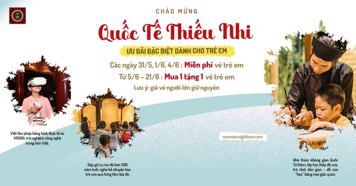 ▪️ Miễn phí vé trẻ em các ngày: 31/5, 1/6, 4/6