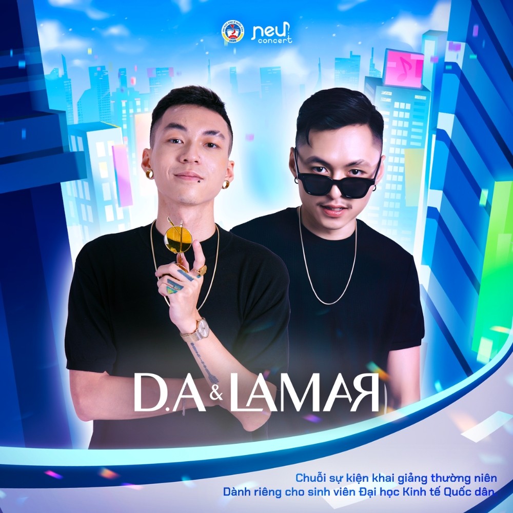 NEU Concert 2025 tiếp tục khẳng định vị thế với sự xuất hiện của Producer của Anh Trai “Say Hi” - Em Xinh “Say Hi”: bộ đôi D.A & Lamar. Với cá tính âm nhạc riêng biệt, D.A & Lamar đã kết hợp với nhiều chương trình, là producer của intro cho chuỗi Concert của Vũ trụ Say Hi và những bản hit của Vũ trụ này như: “Theme Song - The Real Aura”, “I’m Thinking About You”. Ngoài ra đây cũng là producer đứng sau các bài hát “Ta Cứ Đi Cùng Nhau”, “Trạm Dừng Chân”. Lần đầu đến với NEU Concert, D.A & Lamar hứa hẹn sẽ đem đến những màu sắc âm nhạc độc đáo, mới lạ cùng những giây phút “quẩy tung nóc” vô cùng sôi động.