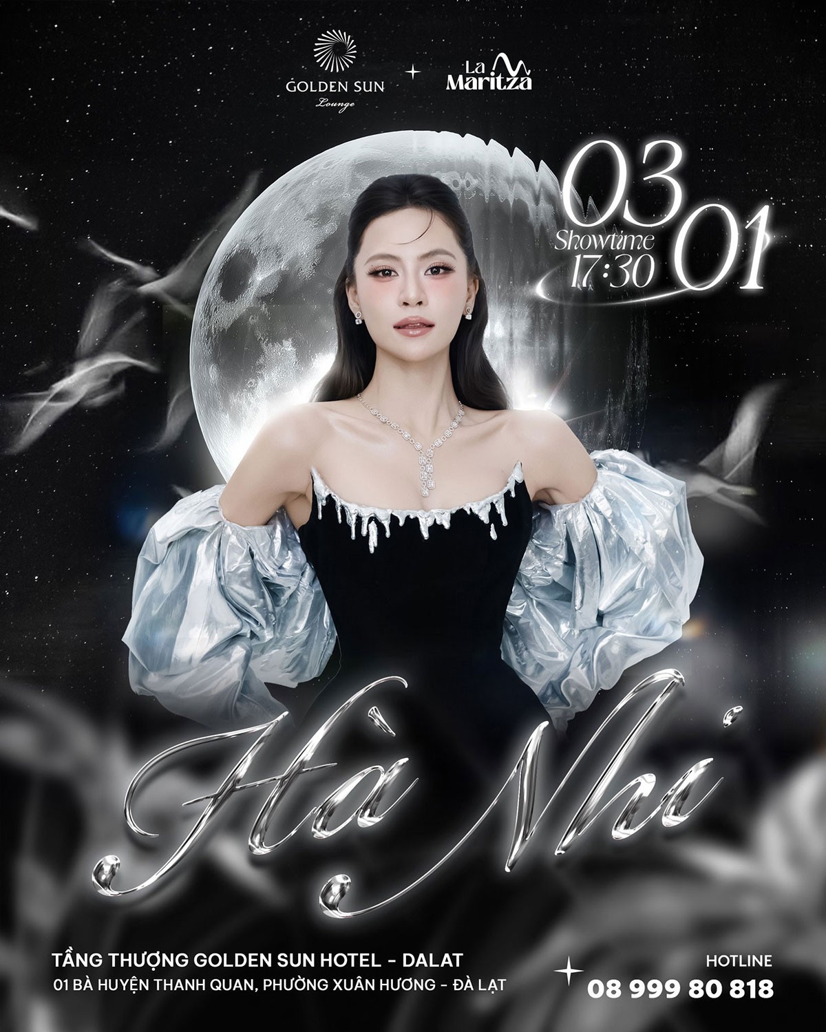 Hà Nhi sẽ không chỉ hát — cô sẽ kể lại những câu chuyện tình bằng chính hơi thở của mình, để mỗi câu hát chạm vào nơi mềm nhất trong trái tim bạn. Giữa không gian tầng thượng của Golden Sun Hotel - Dalat, Ngày 03/01/2026 Hà Nhi sẽ đưa bạn về với những giai điệu chạm sâu, nơi âm nhạc hóa thành cảm xúc và mỗi ánh nhìn là một khoảng lặng đẹp đến nao lòng.