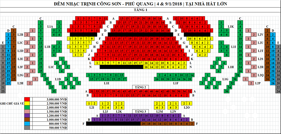 Giá vé: 500.000 - 800.000 - 1.000.000 - 1.200.000 - 1.500.000 - 2.000.000 - 2.500.000 - 3.000.000