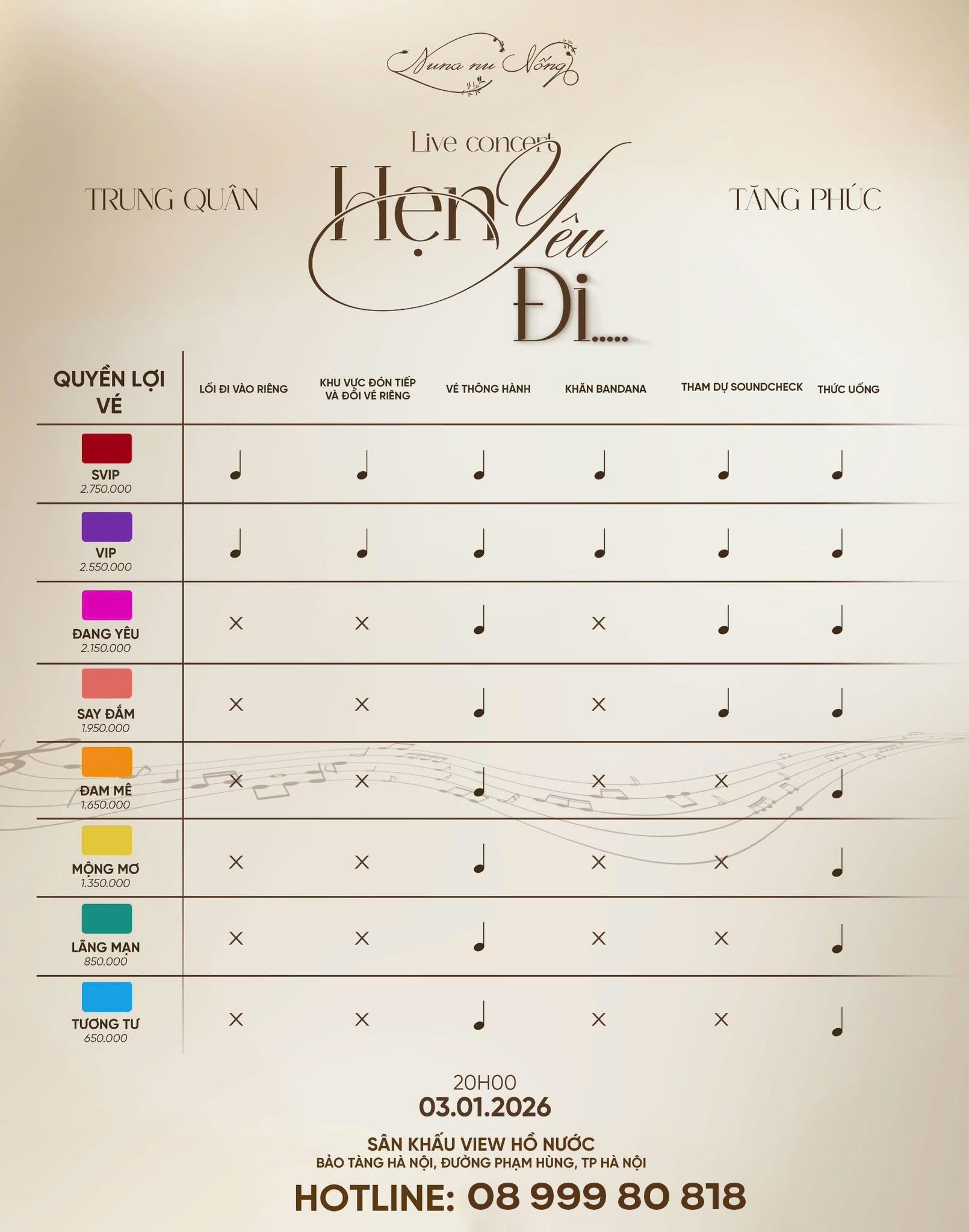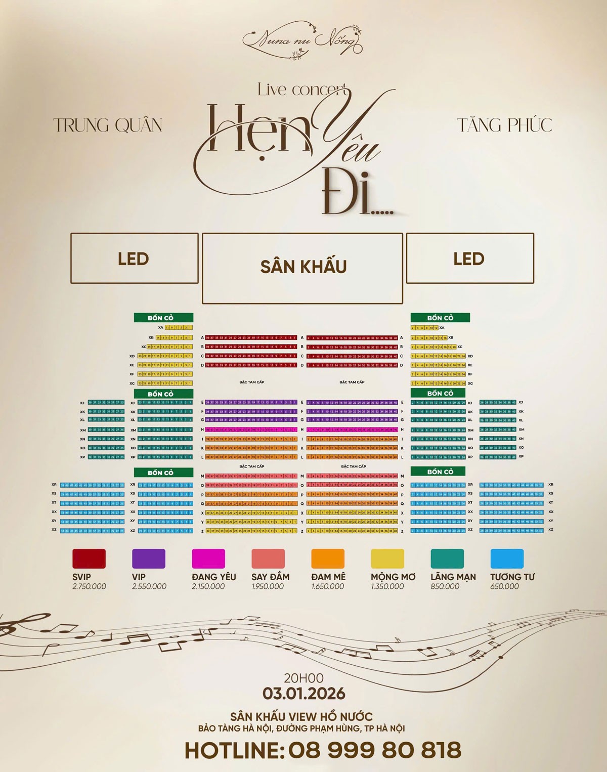 Nếu bạn đang tìm kiếm vé đêm nhạc Trung Quân Tăng Phúc, mua vé concert Hà Nội 2026 hay sự kiện âm nhạc đầu năm, đây chính là cơ hội tuyệt vời để thưởng thức giọng hát live đẳng cấp. Số lượng vé có hạn – hãy mua vé ngay trên Ticketgo.vn để cùng người thương “hẹn yêu” trong không gian âm nhạc ấm áp, đầy cảm xúc giữa lòng Hà Nội.