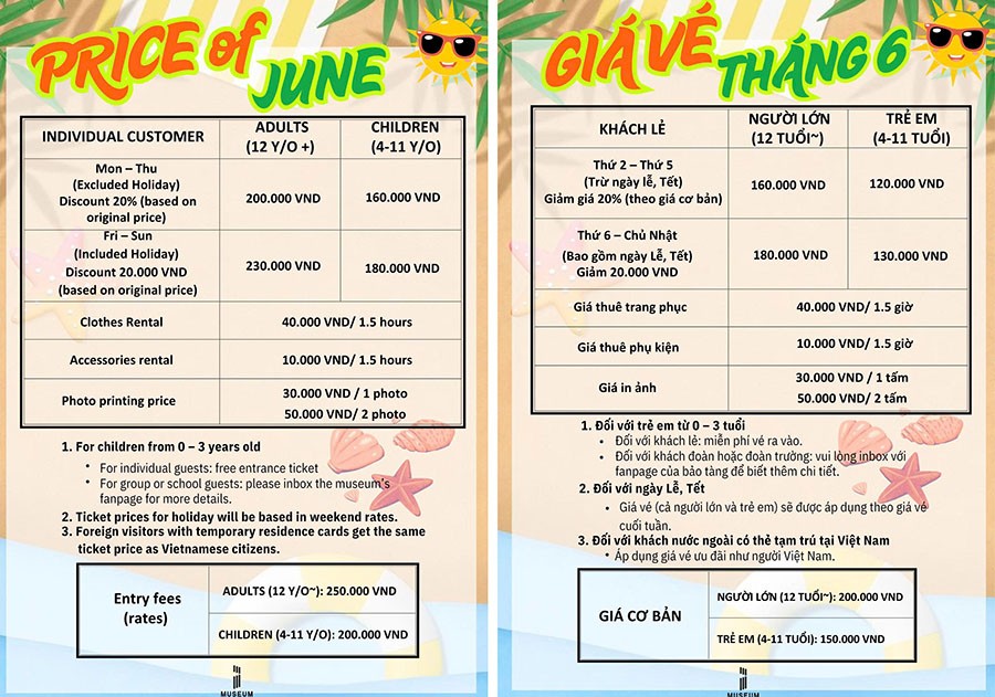- Foreign Visitors | Adults (12 years and older): 230,000 VND/person