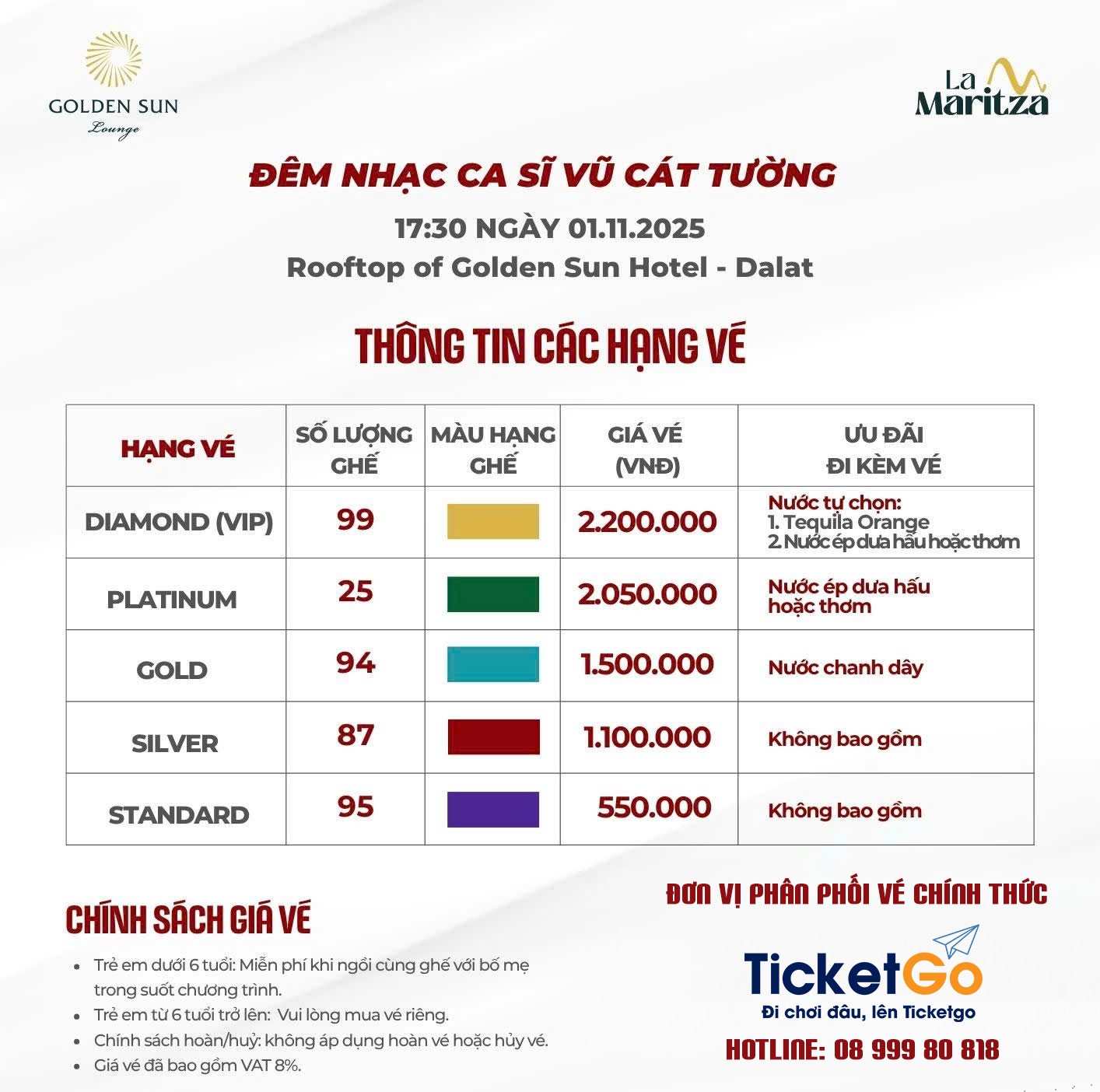 ▪ Vé đã mua không hoàn/hủy. BTC không chịu trách nhiệm đối với vé mua ngoài kênh chính thức.