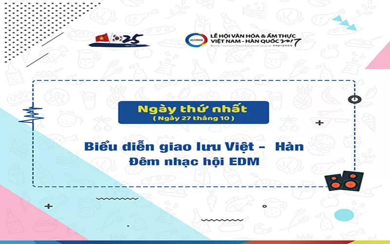 Phía tổ chức sự kiện cho biết khách tham dự có thể nếm thử món ăn Hàn Quốc tại khoảng 120 quầy hàng và tham gia các phần biểu diễn, trò chơi diễn ra tại sân khấu và quảng trường chính. Một số nghệ sĩ làn sóng văn hóa Hàn Quốc Hallyu như Haha, Lee Kwang-soo, hai nghệ sĩ được nhiều khán giả Việt Nam yêu mến qua chương trình thực tế Running Man (đài SBS), cũng sẽ xuất hiện trong lễ hội sắp tới để giao lưu với người hâm mộ.