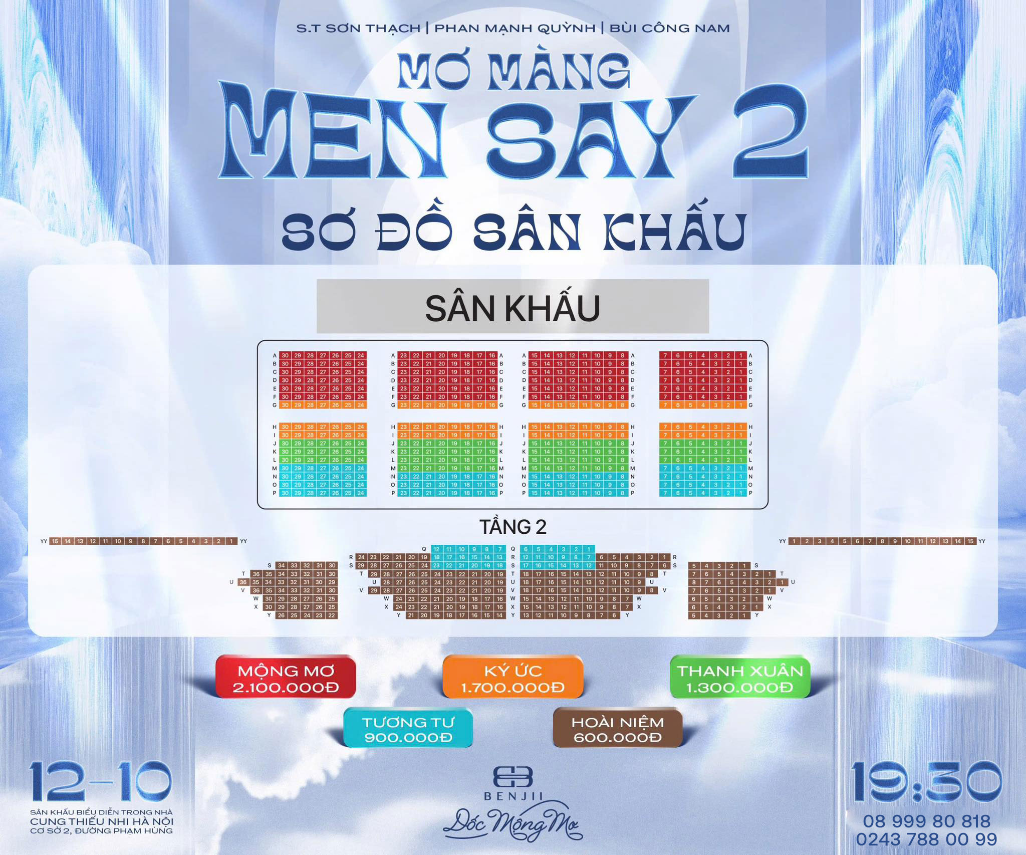 SƠ ĐỒ VÀ GIÁ VÉ SÂN KHẤU CỦA LIVE SHOW MƠ MÀNG MEN SAY 2