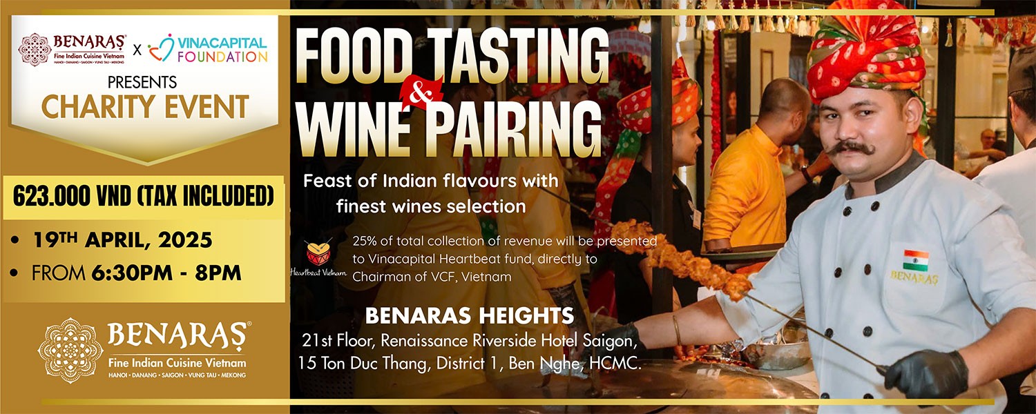Benaras hân hạnh hợp tác cùng VinaCapital Foundation tổ chức Sự Kiện Thử Thức Ẩm Thực & Kết Hợp Rượu Vang Vì Từ Thiện—một đêm đầy hương vị, đẳng cấp và ý nghĩa.