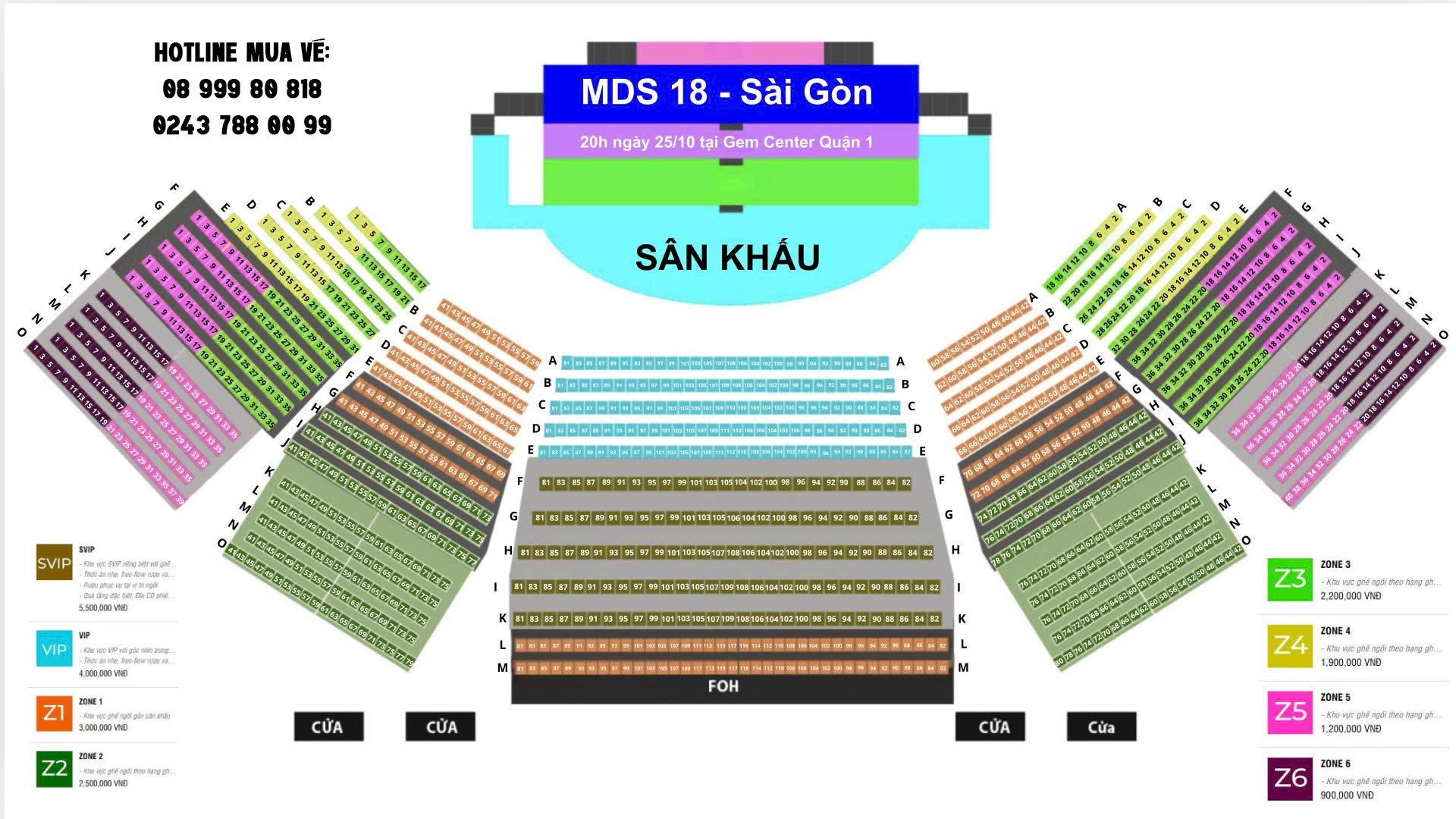 ZONE 2, 3, 4, 5, 6 – Khu vực ngồi theo hạng ghế đã chọn.