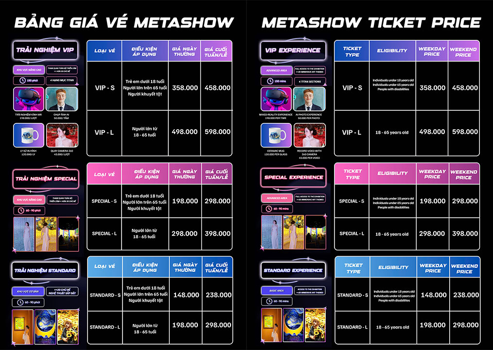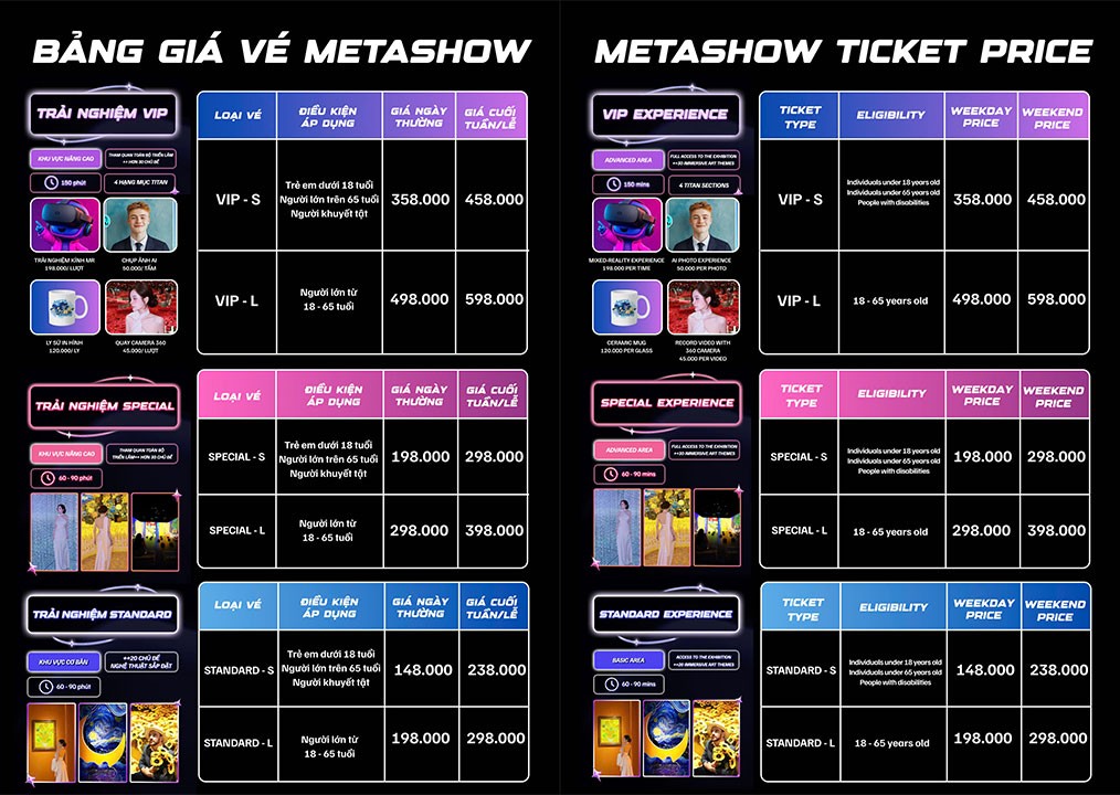 ▪️ VIP-S: 490.000 VNĐ (khách dưới 18 tuổi, trên 65 tuổi và người khuyết tật)