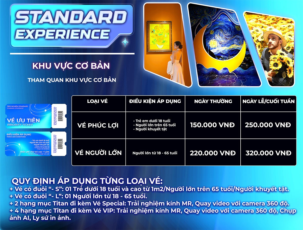 ▪️ Standard - S: 250.000 VNĐ (khách dưới 18 tuổi, trên 65 tuổi và người khuyết tật)