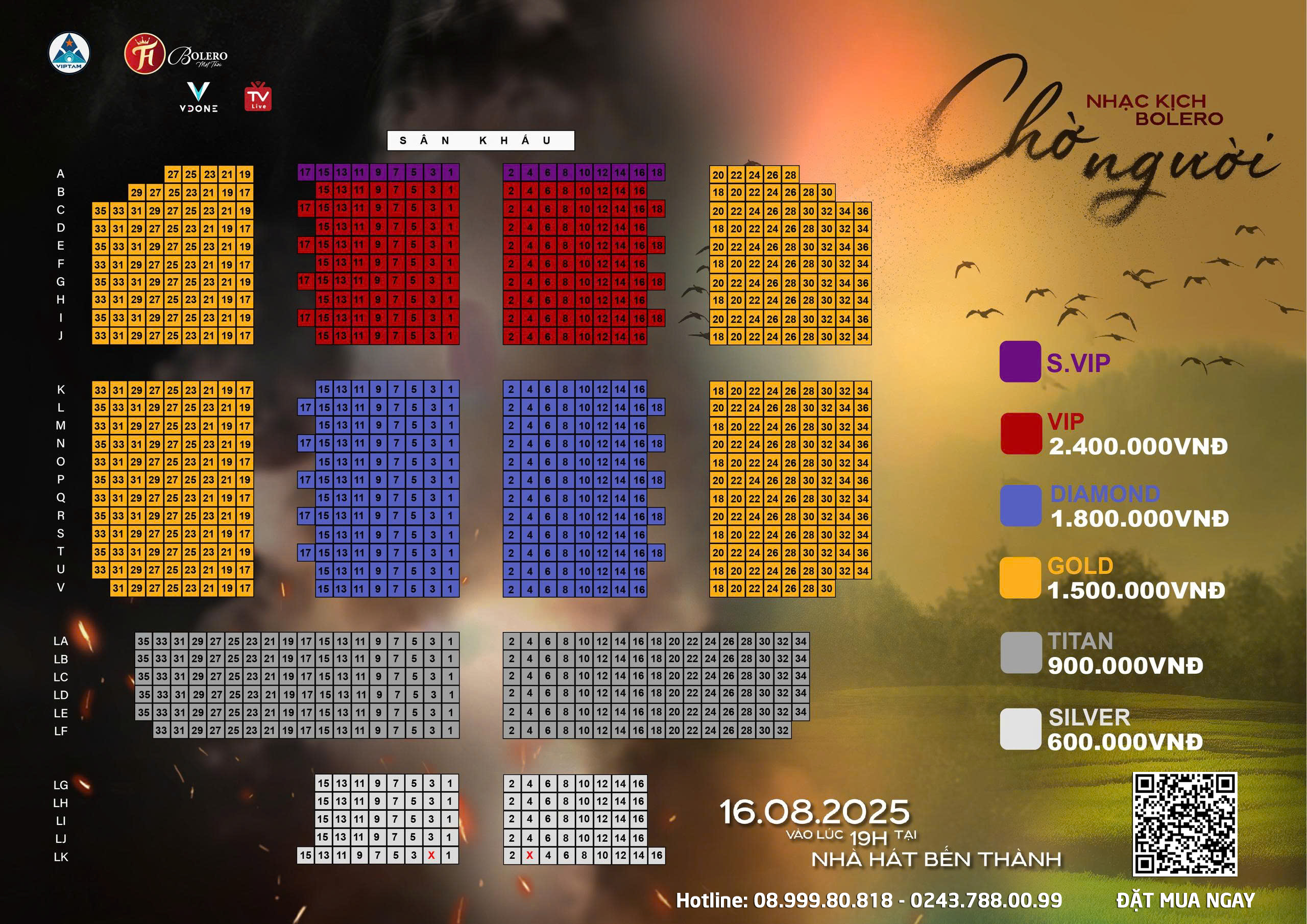 + Toàn bộ vé trong chương trình là hạng vé ngồi. BTC sẽ xuất vé có số ghế ngồi cụ thể cho khách hàng theo hạng vé đã mua trong vòng 48h.