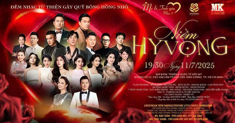 Là điểm nhấn rực rỡ của chương trình nghệ thuật gây quỹ Mẹ là Tình Yêu mùa 5, đêm nhạc "Niềm Hy Vọng" do Đạo diễn - Nhạc sĩ Minh Khang và ekip MK Productions dàn dựng sẽ diễn ra vào ngày 11/07/2025 tại Trường Quốc tế Bắc Mỹ (SNA) - Nam Sài Gòn.