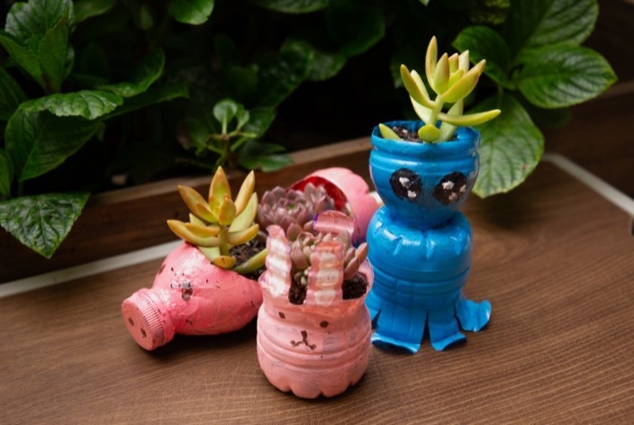 - Gồm 2 giai đoạn: Tái chế chai nhựa thành chậu cây và trang trí chậu cây.