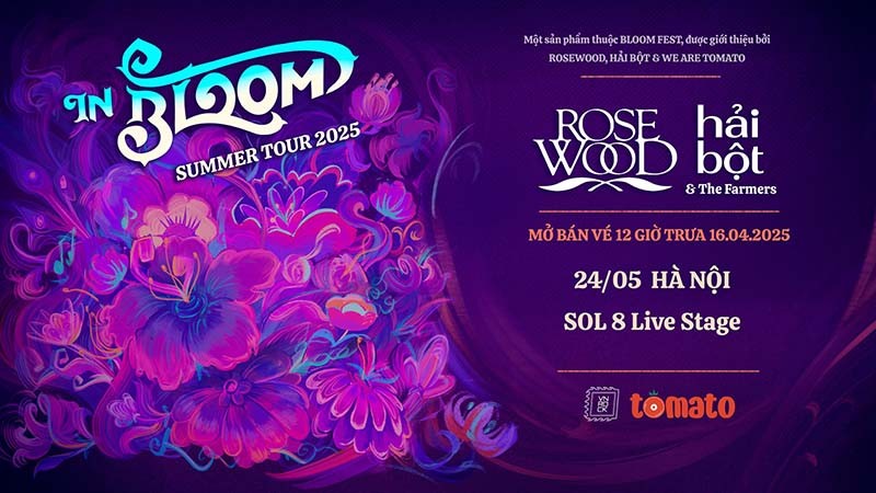 Hải Bột, huyền thoại rock Việt từng tạo nên hiện tượng với Quái Vật Tí Hon và Microwave, cùng ban nhạc Rosewood, biểu tượng của dòng alternative rock Việt Nam, chính thức khởi động tour diễn 3 miền mang tên "In Bloom Summer Tour 2025". Đồng hành với Hải Bột là ban nhạc dày dặn kinh nghiệm sân khấu The Farmers, hứa hẹn mang đến những đêm nhạc bùng nổ, đậm chất tự sự và mang hơi thở cuộc sống tại Hà Nội, Đà Nẵng, và TP.HCM trong tháng 5 và 6 năm 2025.