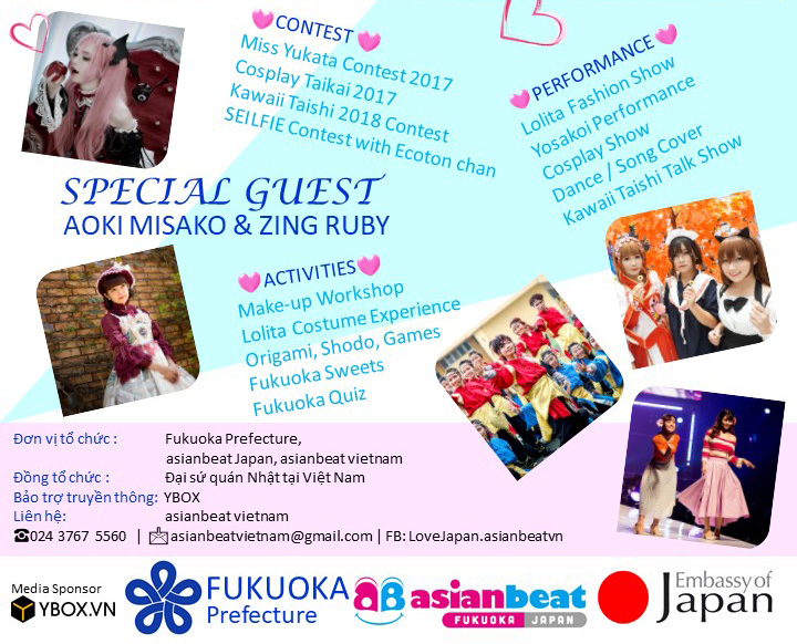 + Cuộc thi tuyển Đại sứ Kawaii × FACo 2018 - Cơ hội sang thăm thành phố xinh đẹp Fukuoka vào mùa hoa anh đào 2018 và biểu diễn thời trang tại Fashion Show chuyên nghiệp FACo.