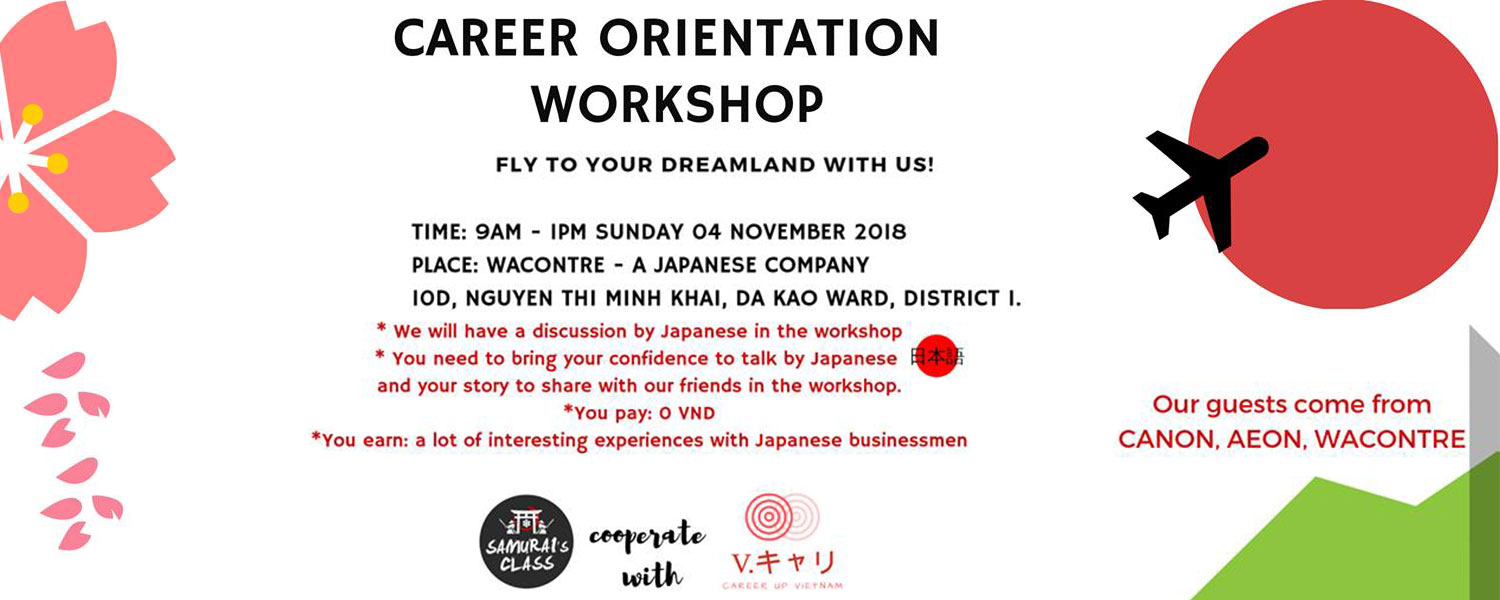 Câu lạc bộ tiếng Nhật Samurai và nhóm sinh viên Nhật Bản sẽ tổ chức buổi workshop định hướng nghề nghiệp cho các bạn đang quan tâm hoặc có dự định làm việc cho công ty Nhật.