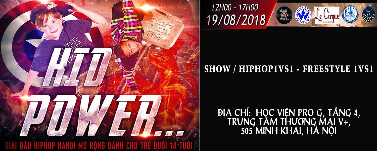 Nhân dịp kết thúc và tổng kết hè, cùng với sự đồng hành của nhóm Soul Waackers, Le Cirque Dance Company, Pro G Academy và Hanoi Dance Academy, Wonder Dance Studio quyết định tổ chức giải đấu Kid Power 2018 dành cho các bạn trẻ từ 14 tuổi trở xuống.
