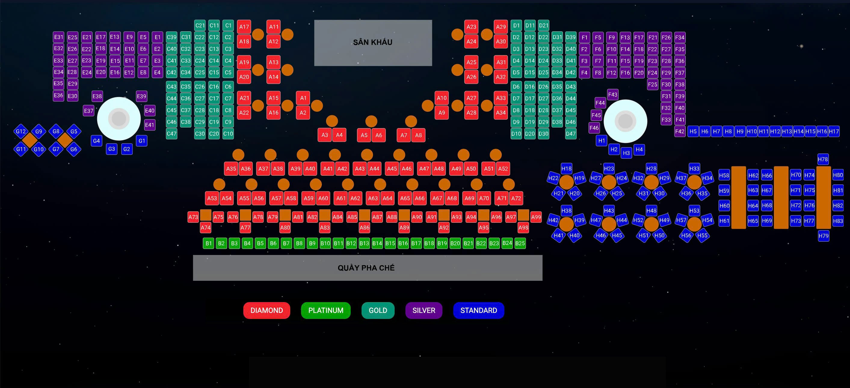 ▪ Vị trí: Khu vực ưu tiên gần sân khấu – góc nhìn rộng, bao quát.