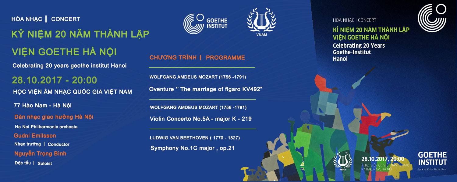 Là một điểm nhấn đặc biệt trong khuôn khổ kỉ niệm 20 năm hoạt động tại Hà Nội. Viện Goethe sẽ phối hợp cùng với Nhạc Viện Quốc gia Việt Nam giới thiệu đến Quý vị khán giả buổi biểu diễn âm nhạc cổ điển với khách mời là nhạc trưởng Gudni Emilsson.