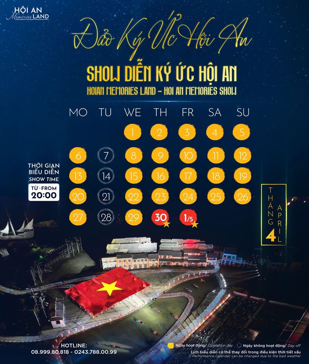 • Show diễn thực cảnh Ký Ức Hội An bắt đầu từ 20h00 đến 21h00