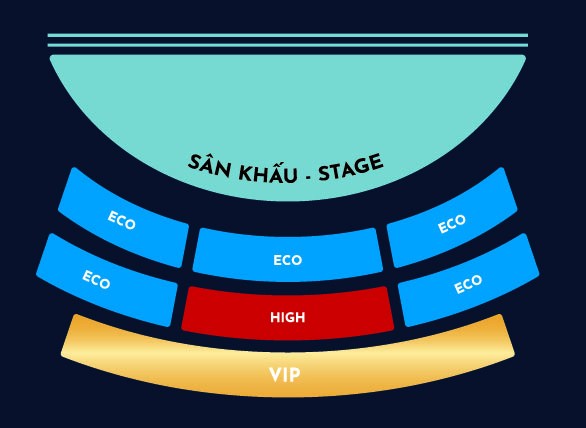 • Vé hạng HIGH chương trình Ký Ức Hội An - khu vực chính giữa khán đài, ghế ngồi có tựa lưng, vị trí cao, tầm nhìn bao quát sân khấu, không có mái che